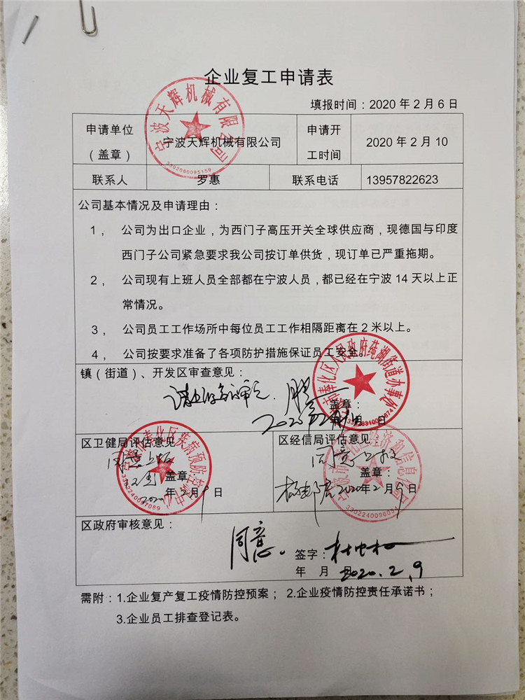 疫情當(dāng)下,我們很幸運(yùn)生活在浙江寧波奉化, 疫情被強(qiáng)有力的控制了,政府部門已同意我司復(fù)工。